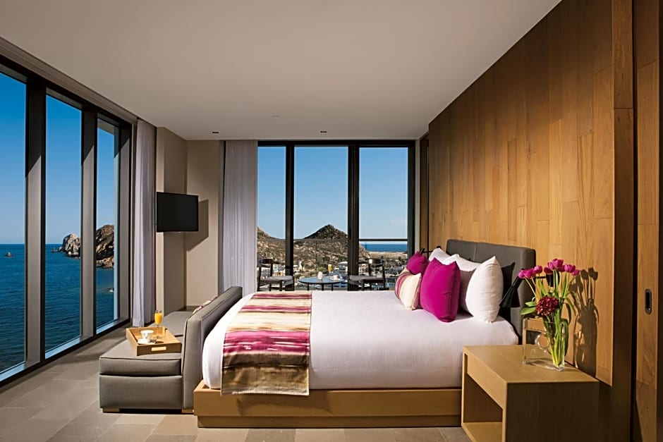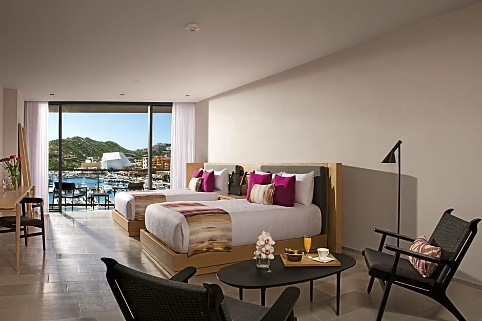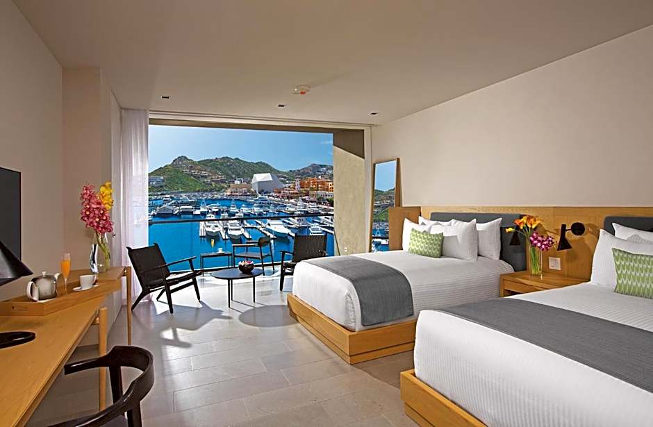 This suite features views the marina of Cabo San Lucas and it is decorated in a fresh and ultra-contemporary ambiance. This room is located on floors 1 through 5.